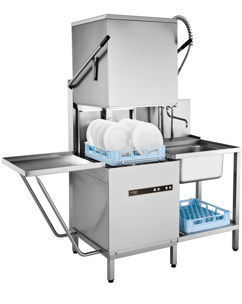 - Hood-type dishwasher for straight through or a corner operation
